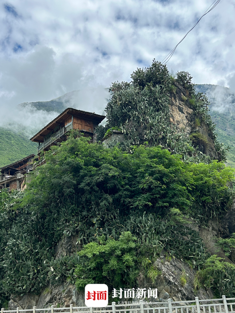 俄亚大村的村民告诉我,领先这是为了保护屋子、招架伏莽而栽植的。也有村民说,这是当然滋长出来的,他们这一带齐遍地可见这栽植物。我无法考据这些仙东谈主掌是如何长起来的,也不知谈存在了多久,它们就这样大剌剌地布满村进口处的崖壁,好像要告诉每一位经由者,这个村子是有些“韧气”的。