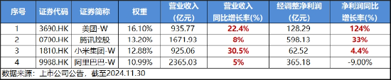 基金三季报清晰,港股互联网ETF(513770)被迫追踪中证港股通互联网指数,其前五大权重股永诀为好意思团、腾讯控股、阿里巴巴、小米集团、哔哩哔哩,所有占比超55%,重仓港股互联网龙头。