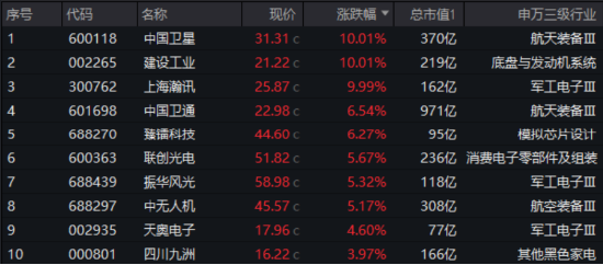 图:中证军工指数成份股12月10日涨幅TOP10