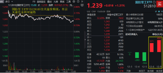 值得珍爱的是,国防军工ETF(512810)全天溢价频现,流露买盘资金相对强势。此前2个交游日,已有资金不竭进场净申购,金额整个超860万元。