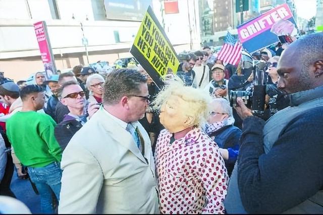 图片证明:特朗普27日在纽约举行靠拢,其守旧者与反对者在场外坚持。 (视觉中国)